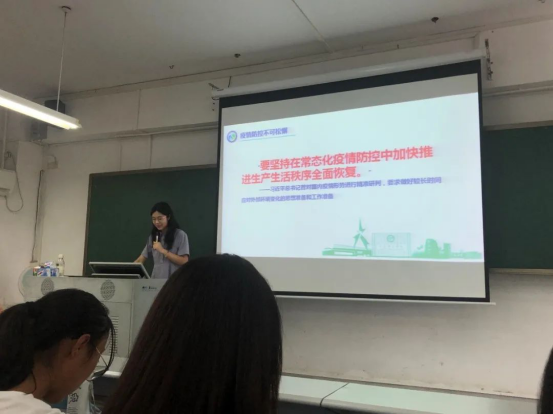 班会强调,常态化疫情防控要求全体师生要坚持底线思维,保持头脑清醒,将疫情防控工作融入日常生活、学习和工作,外防输入、内防反弹,慎终如始,再接再厉。