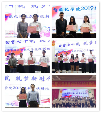 11月24日晚,电智学院在学生中心A109举行“回首七十载,筑梦新时代”2019级新生演讲比赛决赛。电智学院团委书记、辅导员邓慧芬,学院创新创业导师、实验员黄晓园,光电系辅导员梁志凯,学院心理辅导站站长、电气与自动化系辅导员袁旺,电子信息工程系辅导员黄清优担任了比赛评委。