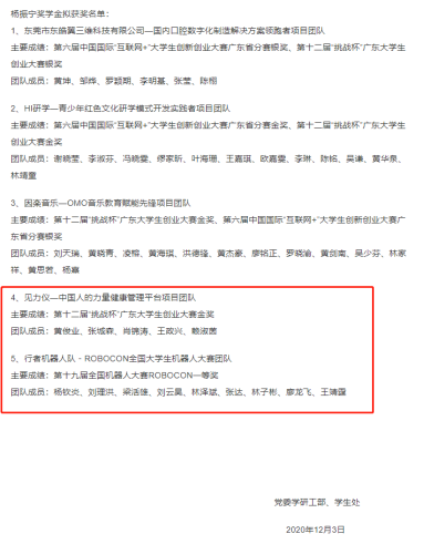 经过材料评审、现场答辩等流程,由我院学生黄俊业主要负责的“见力仪——中国人的力量健康管理平台项目团队”以及我院比赛队伍“行者机器人队——ROBOCON全国大学生机器人大赛团队”,成功在校内各优秀团队中脱颖而出,荣获“杨振宁奖学金”。