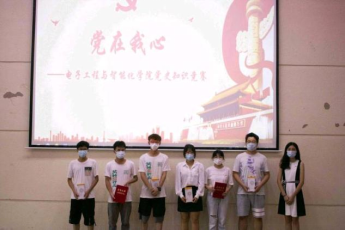2021年5月27日下午,电子工程与智能化学院党委组织开展的“党在我心”党史知识竞赛决赛在学校图书馆报告厅举行。电子工程与智能化学院党委书记、执行院长胡耀华、党委副书记梁意红、组织员张艳玲、学院团委书记、学工办负责人邓慧芬、各学生党支部书记出席比赛,学院第32期入党积极分子通过线上直播形式观看了比赛。