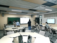 在前期总结出部分章节的教学案例的基础上,1月4日-6日,《普通物理学》课程组通过线上或线下会议,进行了混合式教学模式集体讨论以及集体备课。老师们积极讨论了《普通物理学》混合式教学模式中知识点重塑、师生交互模式、教学节奏、思政元素的有机融入以及可能遇到的问题。借助智慧教室,大家讨论了前期准备的教学案例的实施,并将其中一个案例进行了模拟教学。模拟教学中大家逐个解决实施过程中存在的问题,并请来了课程中心的李沛兰老师进行现场指导。一个案例从开始准备到成功的模拟实施,老师差不多花费了半个月的时间,后续还要花更多时间进行逐步优化,但老师们觉得这种付出是值得的,这是一个教学思维以及教学方法碰撞的过程,也是一个教学互长的过程。