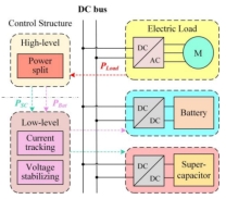 该研究提出一种适用于电动汽车应用场景的锂电池-超级电容混合储能系统双层协调控制方案。对于顶层控制,在综合锂电池功率约束和超级电容实时荷电状态的基础上,对电动汽车的总功率需求进行分配并为两个储能单元生成参考信号。此外,充分利用超级电容高功率密度和长循环使用寿命的特点,对因模型不准确和模型参数摄动等不确定性造成的未知功率损耗进行补偿。对于底层控制,提出了一种基于多输入多输出模型的鲁棒控制器设计方法,以实现在负载扰动下对时变参考信号的精确跟踪和直流母线电压的稳定控制。