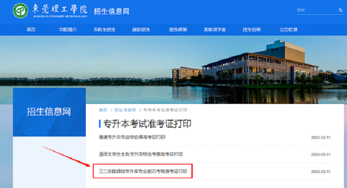 1.登录“永利集团招生信息网”https://zsb.dgut.edu.cn/,点击“准考证打印”。