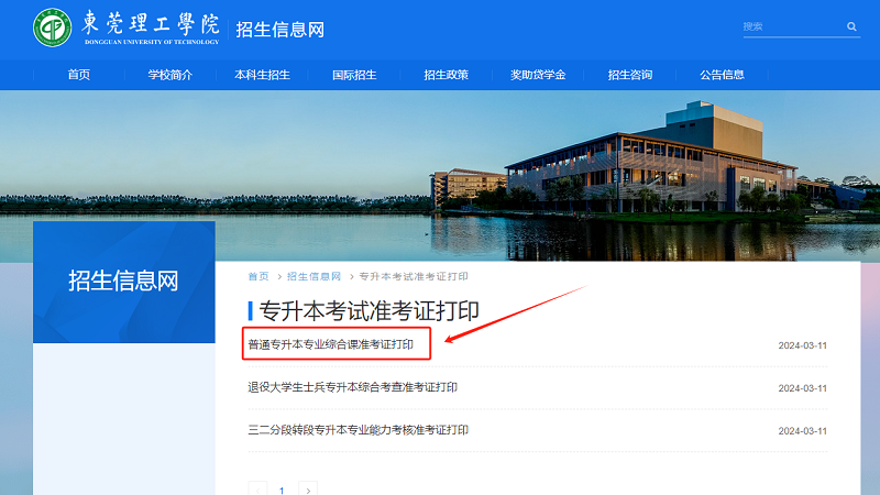 1.登录“永利集团招生信息网”https://zsb.dgut.edu.cn/,点击“准考证打印”。