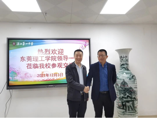 郑军校长指出大学和高中之间存在着天然的联系,莞工地处粤港澳大湾区,区位条件优越,近年来发展迅猛,高度赞扬了莞工的办学理念和丰富的育人成果。他希望能继续加强与莞工的合作,让更多湛江学生能抬起来头走出去,勇敢地面对生活学习。