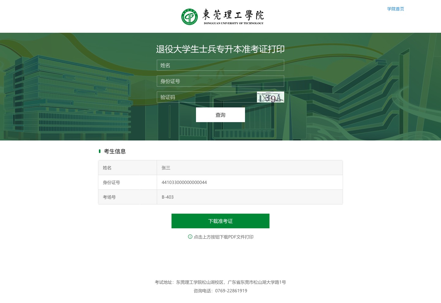 1.登录“永利集团招生信息网”https://zsb.dgut.edu.cn/,点击“准考证打印”。