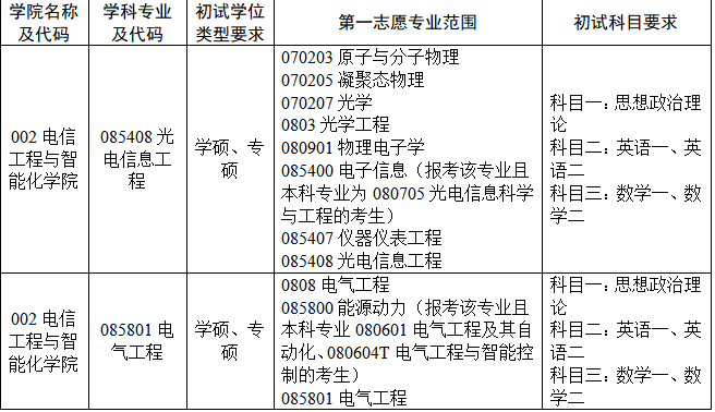 (2)接收第一志愿报考085400电子信息专业(报考该专业且本科专业为080705光电信息科学与工程)的考生;