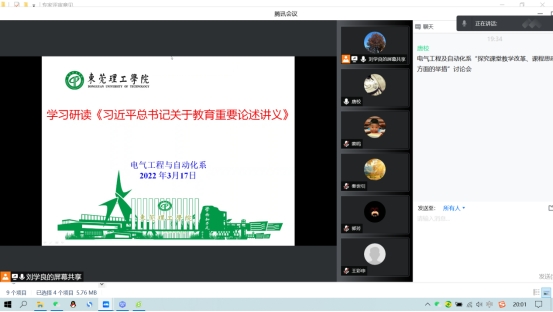 为了进一步落实学校《“深化课堂教学改革 提升课程育人质量”教育教学大讨论工作方案》的精神,2022317日晚上,电气工程与自动化系通过腾讯会议形式召开 “深入探究课堂教学改革、课程思政建设方面的举措”教育教学讨论工作会,会议由刘学良主持。
