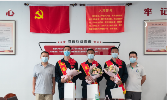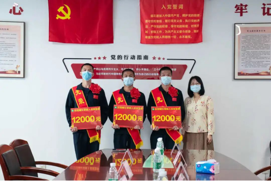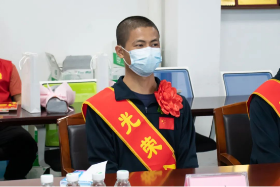 梁意红为新兵颁发奖励金并佩戴大红花。班主任为新兵赠送学院纪念品。