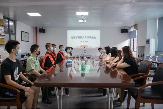 2021年9月8日上午,我院在8A207举办了“电子工程与智能化学院2021年入伍学生欢送会”,欢送我院即将参军入伍的三位学生:罗毅、刘海、李钊灿。我院党委副书记梁意红,学工办主任邓慧芬,电子系辅导员卢楚韵,通信系辅导员朱芳,入伍新兵班主任余炽业、彭超,以及退伍大学生代表邹俊、余广宇、张世锋、易柏旭出席本次欢送会。