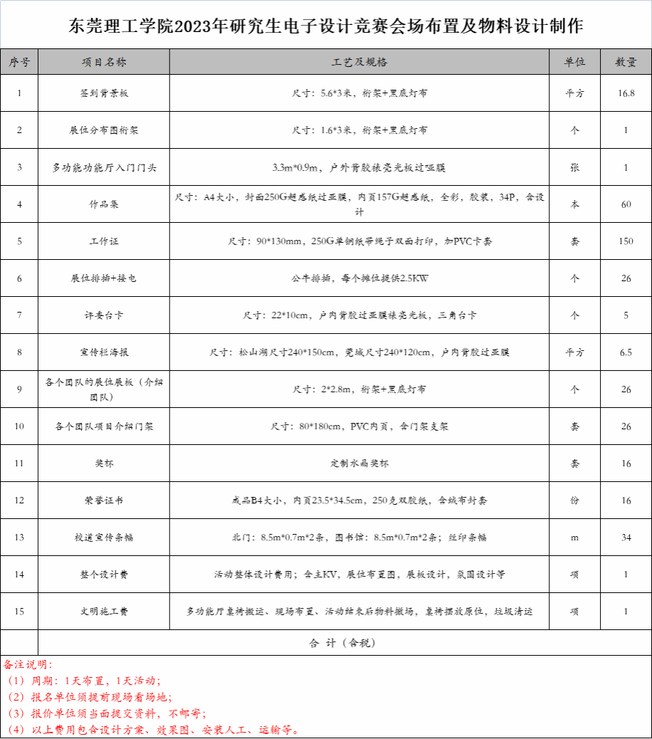 一、项目名称:永利集团2023年研究生电子设计竞赛会场布置及物料设计制作