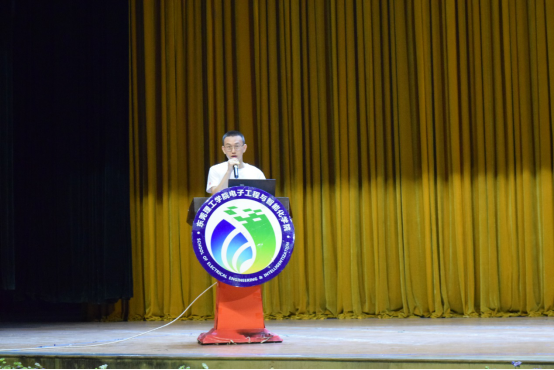 随后,活动进入第二部分——新生见面会环节。电智学院党委书记邓成良教授就学院情况进行介绍,他表达了对新生的欢迎,同时也针对当代青年大学生的特点对新生提出了要求。