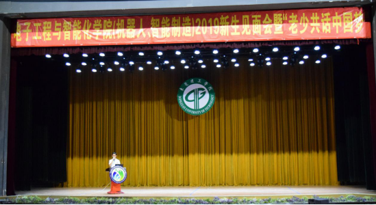 9月1日下午,电子工程与智能化学院(机器人、智能制造)在大礼堂举行了2019级新生见面会暨“老少共话中国梦”活动。永利集团原电子系主任余成教授,电智学院领导班子成员,各系部中心主任,学院办公室、学生办公室成员,2019级全体班主任以及2019级新生出席了活动。
